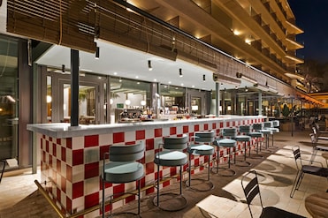 El hotel cuenta con un restaurante con vistas a los jardines y piscinas, una cafetería y dos bares. Los huéspedes disfrutan de opciones gastronómicas al aire libre y desayuno buffet.