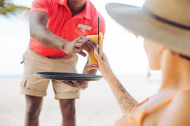 En este complejo te esperan aventuras en la playa de arena blanca. Relájate con yoga, cabañas y tumbonas gratuitas, o sumérgete en los deportes acuáticos cercanos.