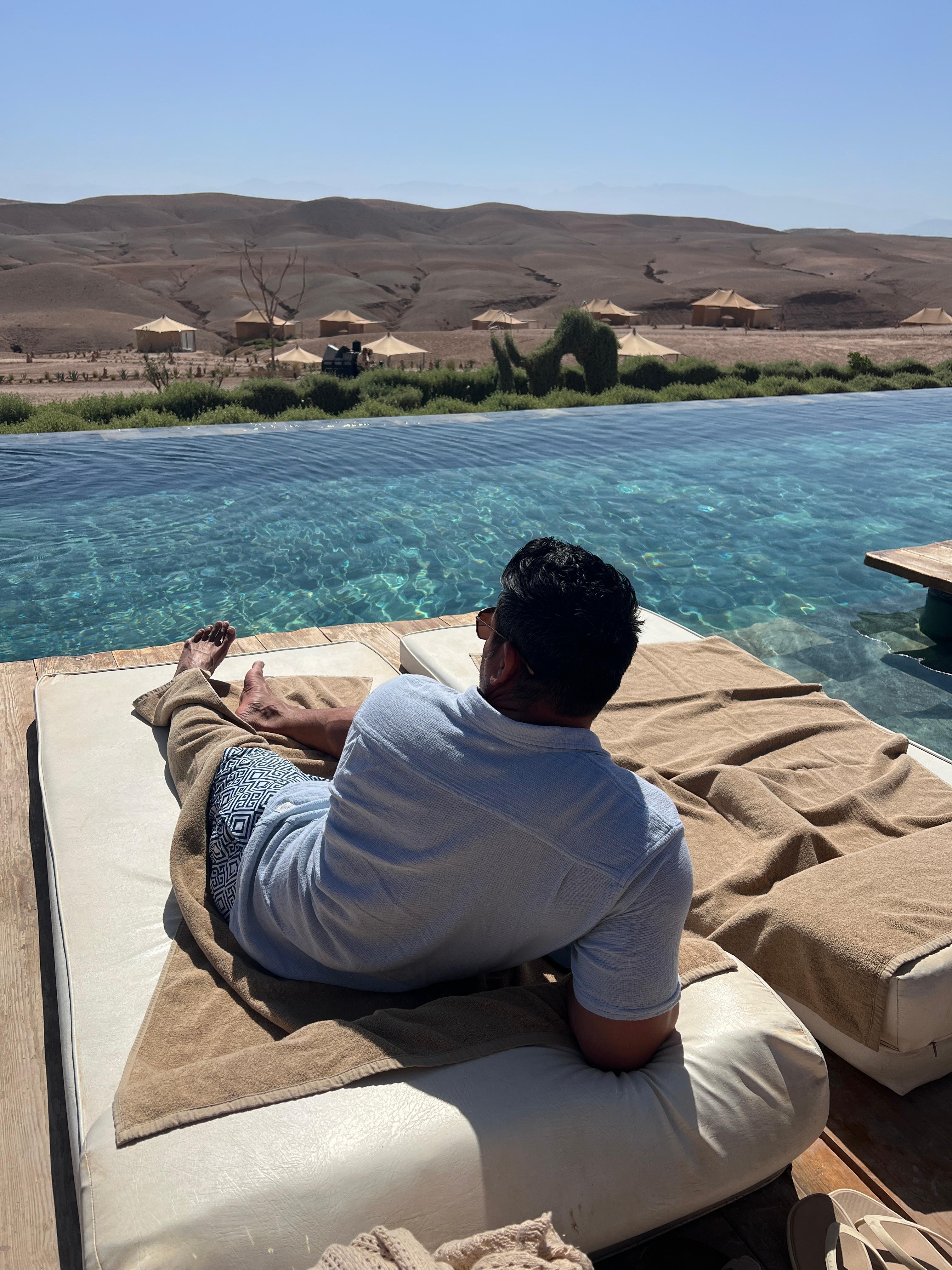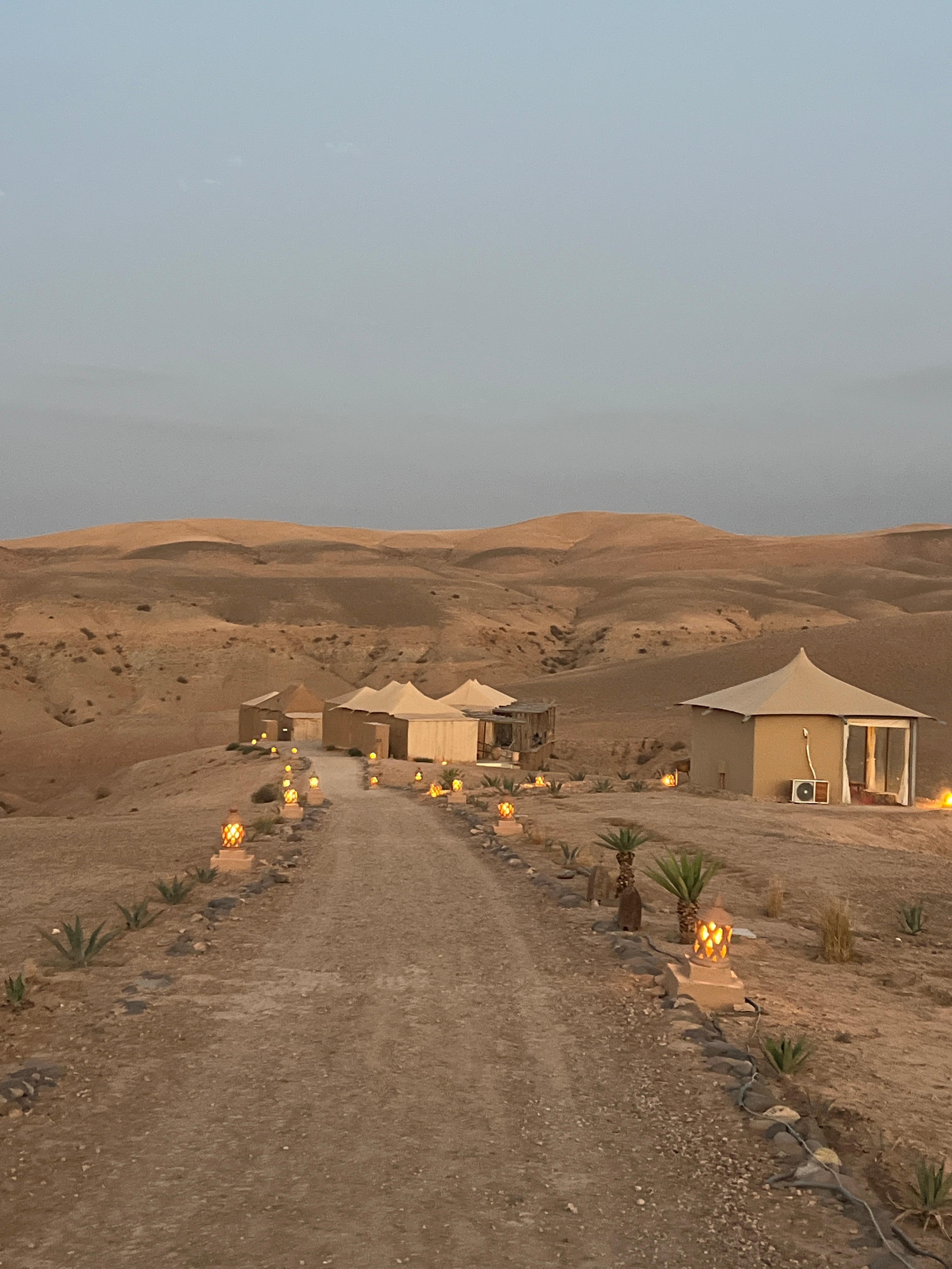 I thoroughly enjoyed this part of our trip to Morocco, the desert was truly a highlight and the accommodations at Agafay Luxury camp was the perfect place to have a glamorous stay in the desert. The property was clean, the room and views from the room were beautiful and the best part of the stay. There are many activities offered at the property. The food options were all very delicious and we were pleased. However, I found staff at Agafay Luxury Desert to be very disappointing. For such a “luxurious” space and selling point, the service was everything but luxurious. No one offered us drinks by the pool, we waited to be served after placing simple drink orders for hours. We would sit down and be ignored, never asked about our satisfaction. We also observed the same lack of basic service skills to other CERTAIN guests. Who we ended up speaking to and learned that they’ve experienced the same poor service. Very unpleasent personalities at reception with condescending tones. I think the poor service really brings down the quality of a potentially great space. I enjoyed being in the desert nonetheless.