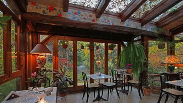 En Glebinias, restaurante gourmet junto a la piscina, se sirven desayunos y cenas. Los huéspedes pueden disfrutar de bebidas en el bar, y se puede comer en la terraza (siempre que el tiempo lo permita). Dispone de menú para niños.