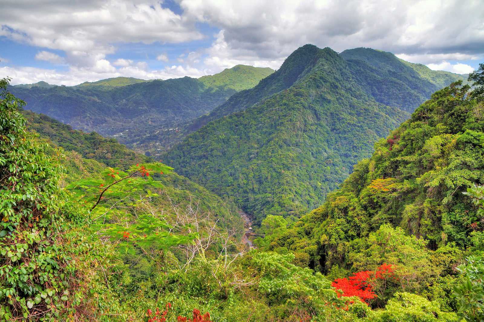 The El Yunque National Forest is a tropical rainforest in Puerto Rico, spanning nearly 29,000 acres. Known for its rich biological diversity, El Yunque National Forest houses a large collection of rare flora and fauna within its unique natural ecosystems. This lush rainforest in the Caribbean offers a temperate tropical climate year-round, resulting in a natural year-round growing season that creates a lush jungle environment. Geography within El Yunque ranges from mountain peaks and rushing streams to waterfalls, cliffs, and sandy shores.