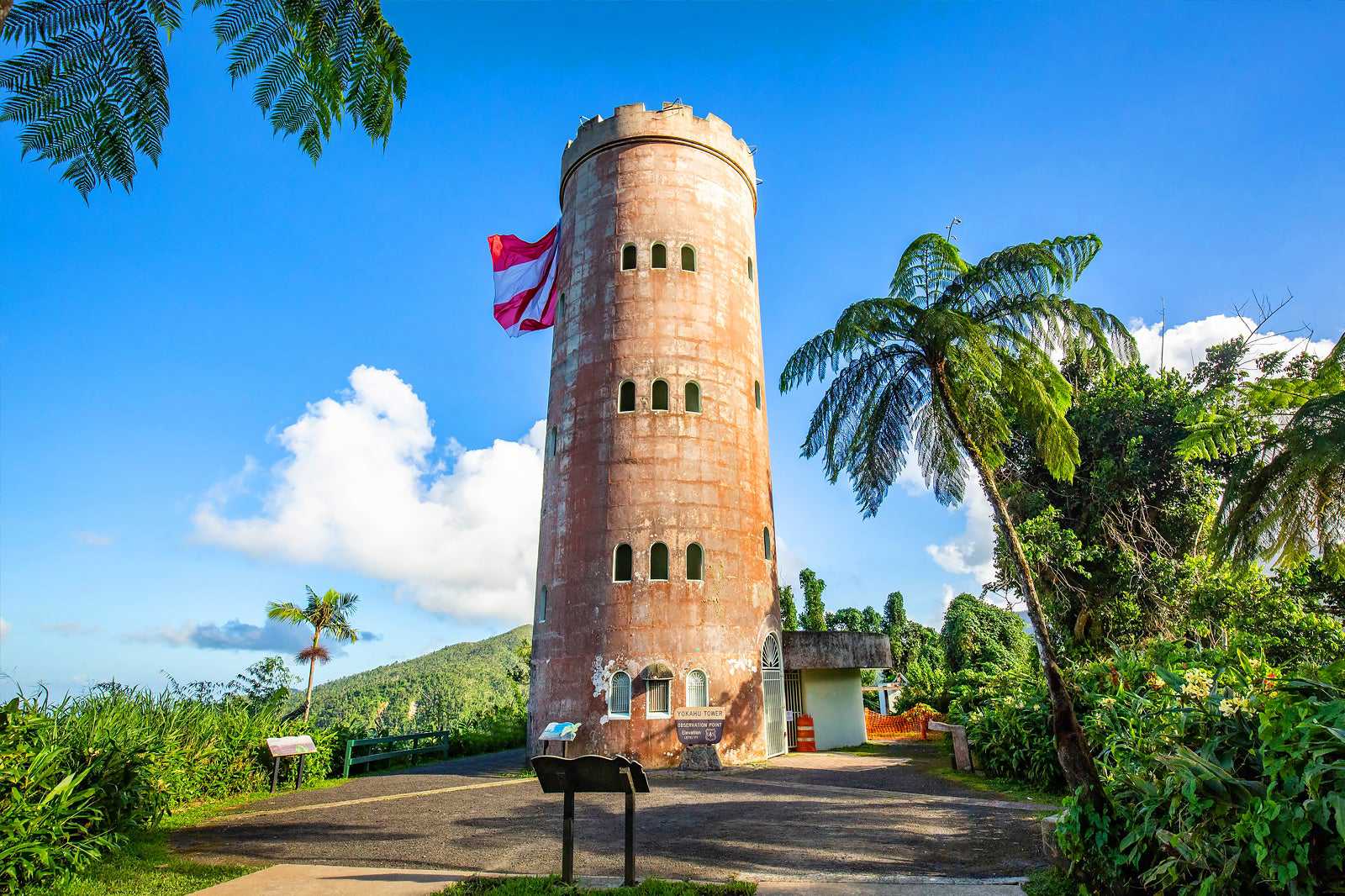 The El Yunque National Forest in Puerto Rico offers a variety of hiking trails, recreation and historical sites, and scenic viewpoints. Multiple visitors centers provide a wealth of information on hiking trails, wildlife, and historical information. At the El Portal Rainforest Centre, you can explore a raised treetop walkway, which extends to 60 feet above ground. The 24 miles of hiking trails within the forest range from family-friendly strolls to challenging treks for experienced hikers.