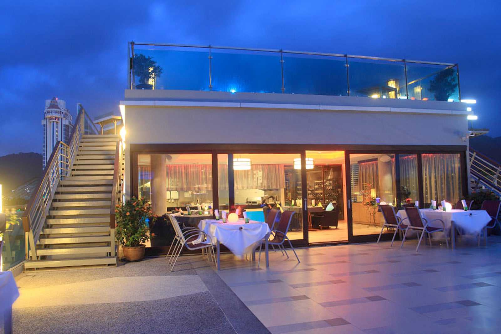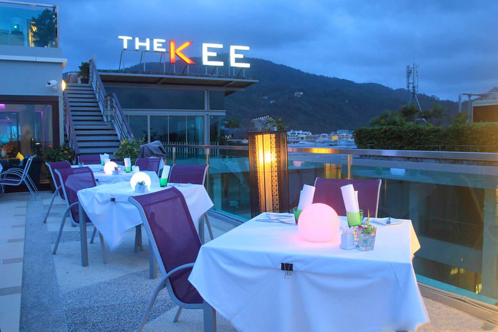 KEE Sky Lounge is a rooftop lounge and restaurant overlooking Patong Beach in Phuket. Even though it’s right in the noisiest and most bustling part of Patong, you can only hear the breeze, sound of the waves breaking, and the restaurant’s sound system playing classic jazz and soft Brazilian music.