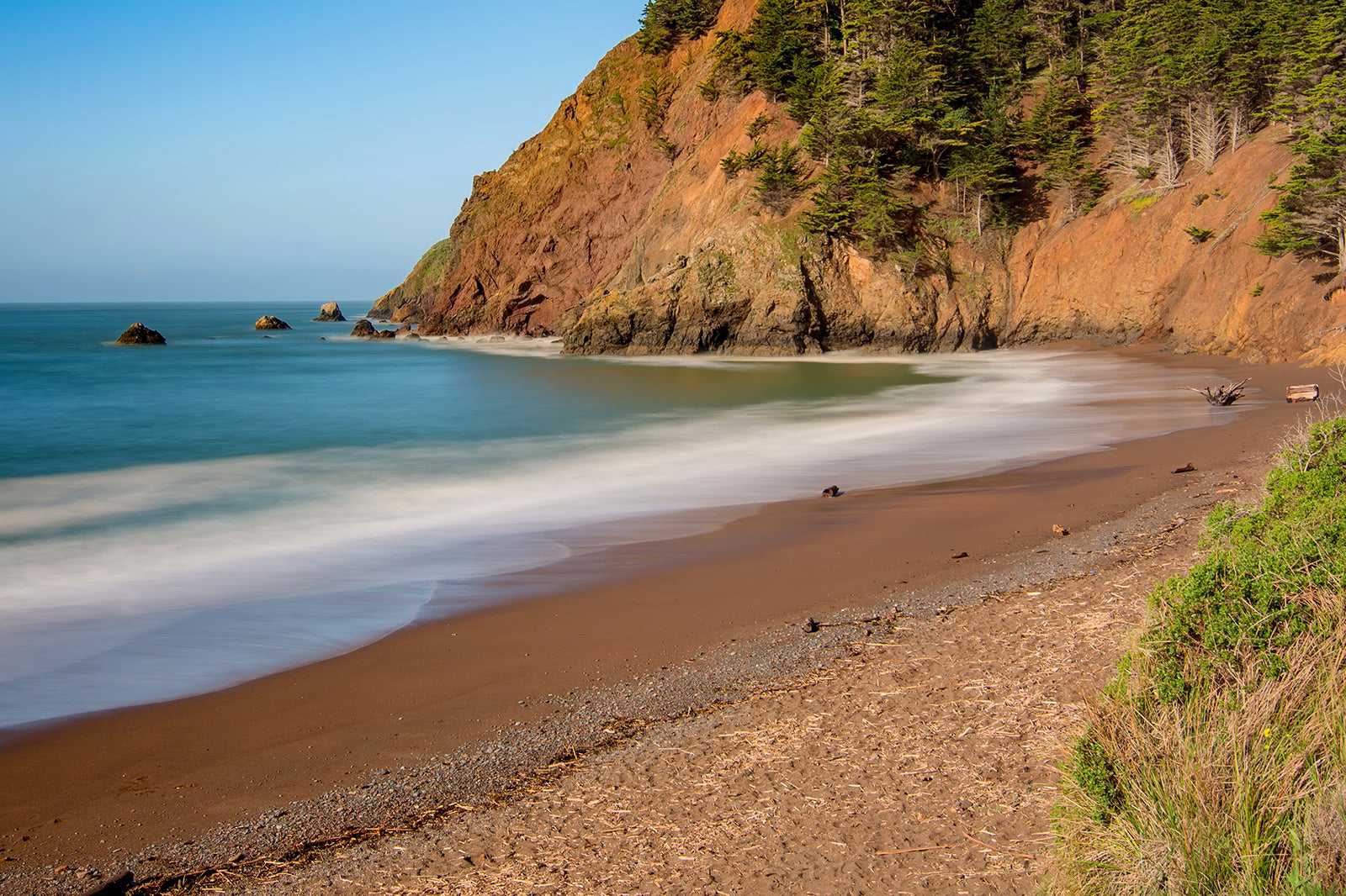 Kirby Cove is spread across varying terrain that slopes downward toward the coast. For that reason, it’s advised to plan for an uphill walk if you're leaving the beach at the end of the day. If you plan to camp at Kirby Cove, get your reservations well in advance because the limited number of campsites goes quickly.
