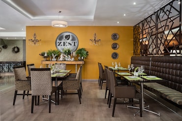 Los comensales se regocijan en el restaurante y bar de este hotel. Cada mañana, un desayuno buffet con opciones vegetarianas y veganas satisface diversos paladares.