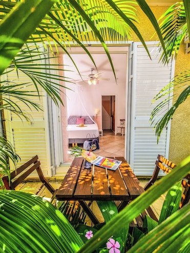 My wife and I had a wonderful stay at Villa Des Mascareignes. We stayed in the Soufflé Austral room which had big open windows that looked out to the ocean, and double doors with a balcony where our hosts made us a wonderful breakfast each morning. There were screens you could use to get fresh air or use an AC unit which was great. We chose to eat a dinner here and it felt like we had a private chef, which was our host Audrey. Very delicious and home made food! The whole place was super clean and detail orientated - they even had a book with suggested trip itineraries in the area. Olivier made us feel welcome the whole stay and was a tour guide with great english (hard to find in Reunion) and gave us great travel advice each morning. We stayed in a few other highly ranked places in Reunion but this was our highlight. Driving on the island is a challenge everywhere with tight roads so be aware the entrance is on a tight one way but don’t let that deter you from an unforgettable stay. We got used to that pretty quickly, and there’s a cute friendly dog on the property - Maxi. The pool was also very clean and inviting and the sun set views were unforgettable!