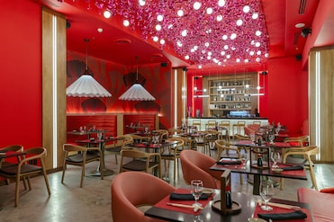 Te esperan aventuras culinarias con la variada cocina del restaurante. Las cenas junto a la piscina y las opciones privadas elevan la experiencia. El servicio de champán hace las delicias.