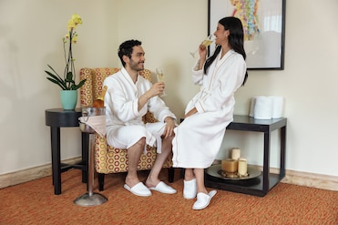 Las parejas se retiran a un spa de servicio completo que ofrece aromaterapia y masajes. Te esperan una sauna, una sala de vapor y un gimnasio abierto las 24 horas. Los jardines proporcionan un apacible respiro.