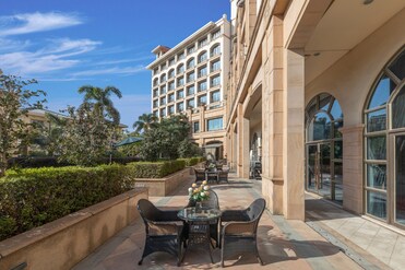Marvel at the curated furnishings adorning this luxury hotel. The elegant ambiance and historical surroundings create a refined atmosphere for guests.