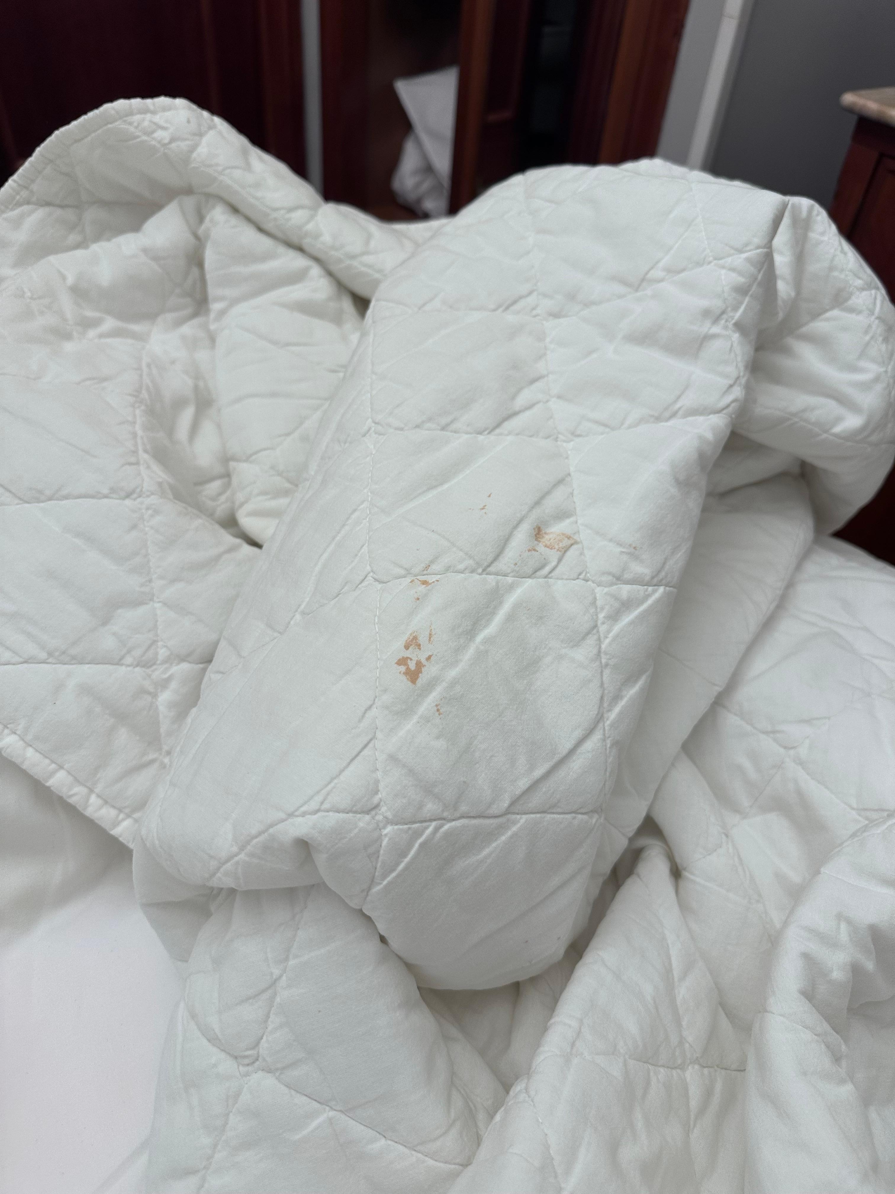 3. Appalling Hygiene Standards - women hair on fresh towels, visible blood stains on spare duvet (needed because the room has no heating!)