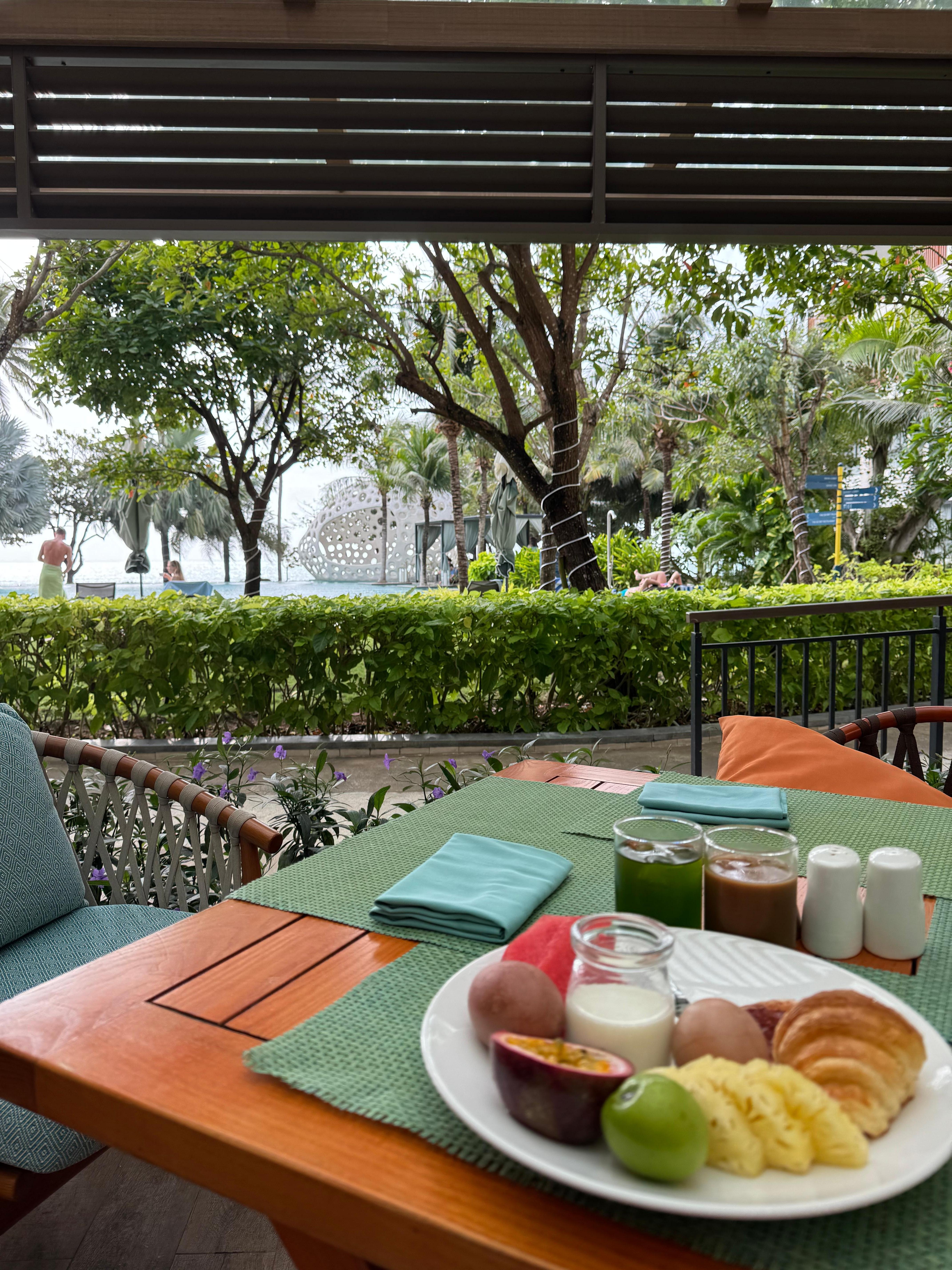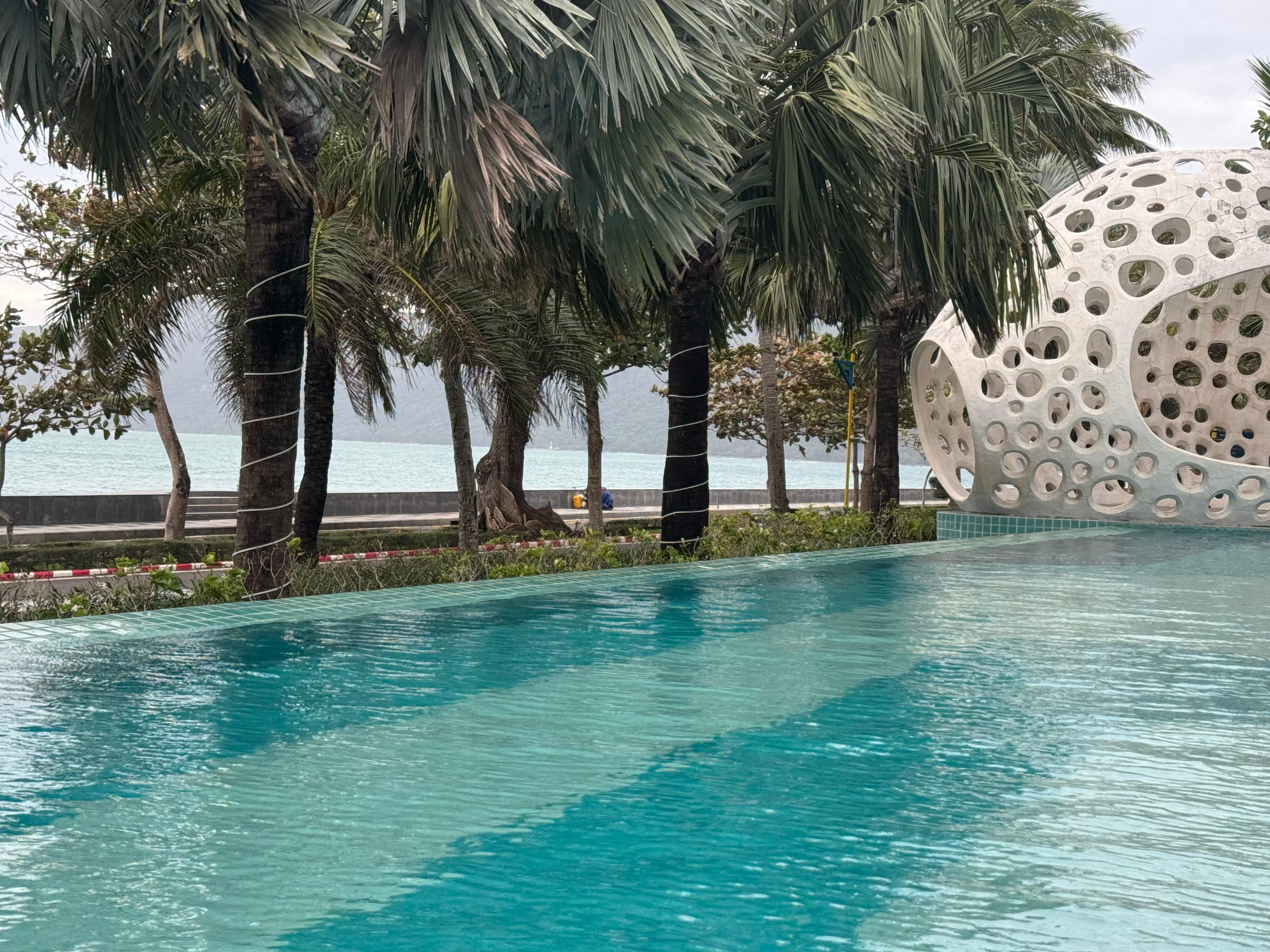 Der er kun ca. 20 liggestole på hele resortet, som derfor blokeres tidligt om morgenen. Som ekstra irritation spilles de samme fire numre konstant over hele resortet.
