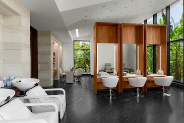 Un spa de servicio completo ofrece tratamientos diarios en salas para parejas y zonas al aire libre. Una bañera de hidromasaje, una sauna y una sala de vapor complementan el gimnasio 24 horas y las clases de yoga.