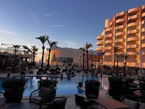 It was clearly the most disappointing place I've ever stayed. It's not worth the price. When we arrived, the room had a very bad smell, like a sweaty armpit. The double bed was actually two single beds pushed together, and they started to separate as soon as we lay down. The bed linen didn't smell good either. Of all the restaurants in the hotel, only one was good, which in our case we could only book once to go to, and it served Mediterranean food. The others all had practically the same Asian food, and all the food tasted or smelled of curry. There were 3 types of wine available in the all-inclusive, and they tasted like flavored water with alcohol, very low quality. The corridors of the hotel were dirty and smelled of mildew. The only day we asked for the room to be cleaned to change the towels after being out of the hotel for almost 4 hours, when we returned in the middle of the afternoon the room had not been cleaned. The hotel has swimming pools which are good, an infinity pool on the top floor which is small. The breakfast was good, although the coffee from the machines was horrible. The coffee from the coffee maker at the entrance was good, but the food there was not all-inclusive. The hotel is well located, 1 block away there is access to bus lines that connect to the whole island. There are 2 beaches nearby. If you don't like curried or spicy food, you probably won't like the hotel. We were also supposed to receive a bottle of sparkling wine for booking through Hote