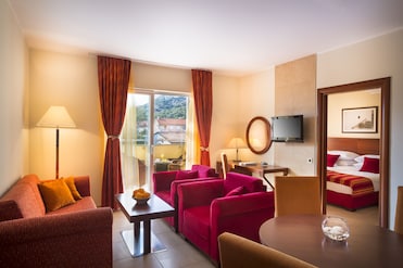 Die Villa Adria ist eines von mehreren Gebäuden, die allesamt zu einem Hotel gehören. Die Zimmer "zum Park" sind extrem laut. Der "Park" ist ein ca 20 Quadratmeter großer Grünstreifen, der durch eine Thujenhecke zur Straße hin gesäumt wird. Gegenüber ein Restaurant mit Terrasse, und linker Hand die Anfahrtszone zum Supermarkt, der sich im gleichen Haus befindet. Vom Supermarkt bekommt man nichts mit, aber von den Lieferungen. Obwohl das Haus mit "Hundefreundlichkeit" wirbt, findet man in der gesamten Umgebung sehr viele Hundeverbotsschilder und keine Grünstreifen bzw. Freiflächen, auf denen man dem Hund "ausführen" kann. Pro Übernachtung werden unverschämte 20 EUR pro Tier berechnet, wofür man keinerlei Gegenleistung wahrnimmt. Vielmehr wird beim Check-In gefragt, ob es sich um ein "liebes" Tier handelt und man erhält eine Hunde-Haus-Ordnung, die im Prinzip zusammengefasst festhält, dass man mit Hund eigentlich nirgends hin soll, und er nicht alleine im Zimmer zu lassen ist.