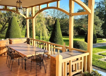 The building (exterior and interior) and gardens are spectacular. We were met at the door by our host, Jean-Francois. He was extremely welcoming, carried our luggage from the car and provided coffee on the terrace. Our period room was spacious and comfortable with en suite facilities. We had ordered dinner which we ate with the 3 other guests. The dinner was a wonderful experience which started on the terrace and ended in the dining room.Jean-François cooked the multi course meal and served every course with a comedic flourish. Most of the food was sourced locally, and mostly local specialities, and all beautifully presented. Our bed was comfortable, the shower had loads of hot water! Breakfast the next morning followed a similar theme to dinner and involved several courses and local specialities.