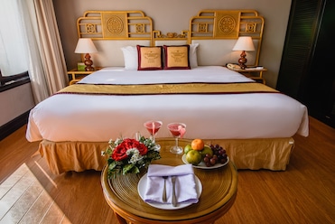 Si deseas hospedarte en Huế, Huong Giang Hotel Resort and Spa es una increíble opción que cuenta con una marina/club náutico. Los huéspedes pueden pasar por el gimnasio para hacer un poco de actividad física. Además, les recomendamos ir comer algo rico a Hoa Mai Restaurant, uno de los 4 restaurantes, que ofrece el desayuno, el almuerzo y la cena. En este hotel de estilo Art decó, podrás disfrutar de 3 bares, una bañera de hidromasaje y un sauna. Los huéspedes destacan la atención del personal y el estado general de las instalaciones.