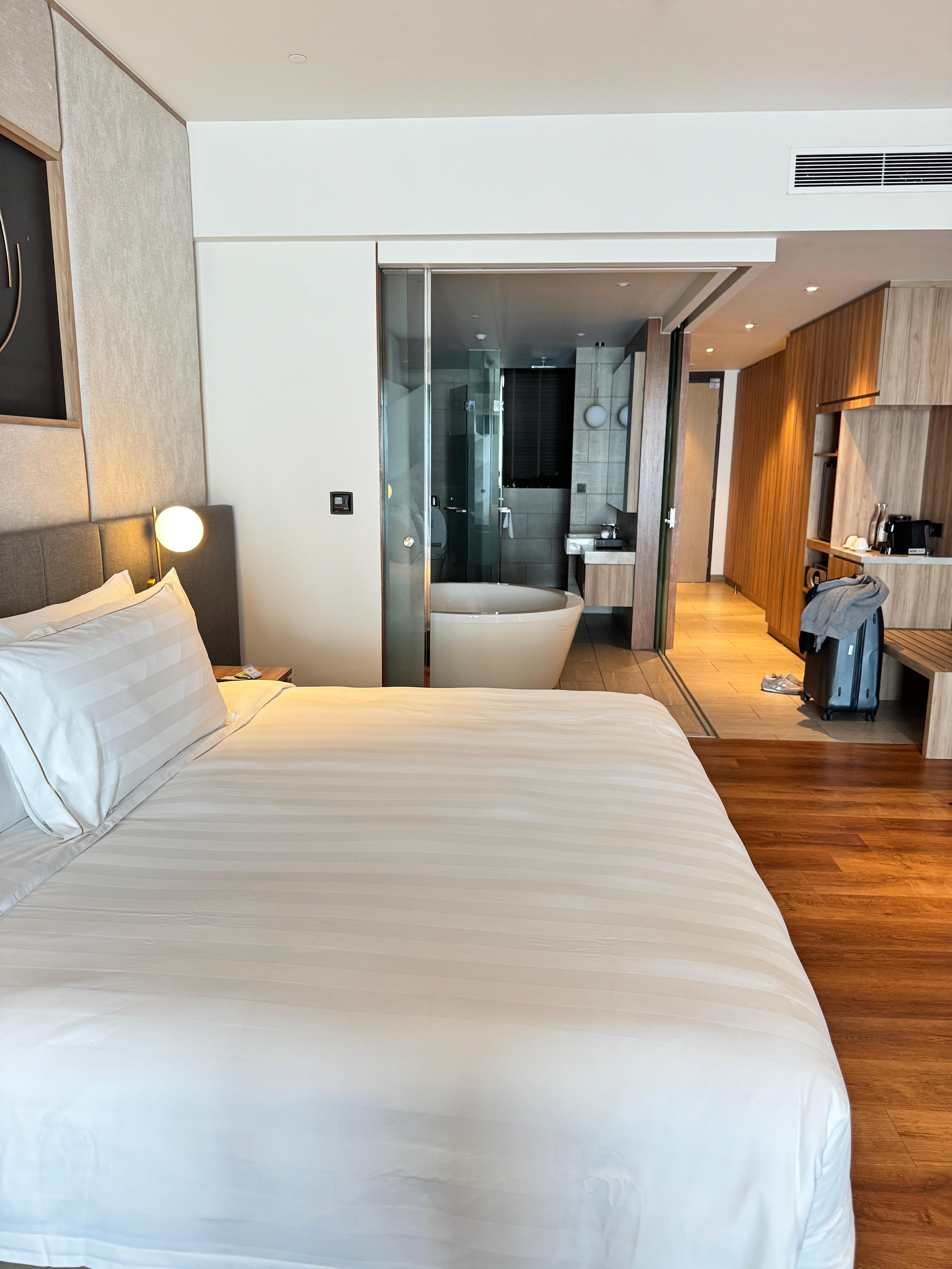 Værelset var helt fantastisk og den store ballon med sofa-arrangement var perfekt om aftenen. Personalet var også i superligaen. Virkeligt imødekommende og oprigtigt interesseret i at hjælpe. Fitness lokalet var også godt og deres game room var overraskende godt.