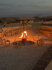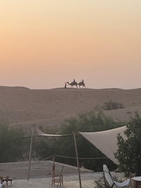 Si quieren tener una pequeña probada de como es estar en el desierto cerca de Marrakech, esta propiedad cumple con esa misión. El cuarto es muy cómodo, aunque nos tocó una ubicación lejos de las areas comunes, pero valoramos las caminatas de ida y vuelta con las lindas vistas y la tranquilidad de la tienda donde dormimos. Importante señalar que las facilidades sanitarias son como las de una caravana o de un pequeño yate, bastante ecológicas. La ducha si es normal y con buena agua caliente apropiada para el frío que hace en la noche. Lo que tienen para entretenimiento nos gusto mucho. El desayuno es muy bueno, abundante y nutritivo.