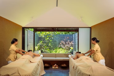 Un spa de servicio completo ofrece diariamente aromaterapia y masajes en salas de tratamiento para parejas. La bañera de hidromasaje y el yoga en la playa realzan la serena escapada al jardín de este hotel.
