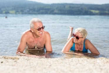 Location - just by the lake with plenty of sunbeds to sit on. They have a number of steps into the lake for swimming. It’s clear and lovely to swim in. The hotel provide a dressing gown and 2 towels each for the lake ( sun lounger and for drying) in a great bag to take with you. The hotel have a bar so you can get drinks whilst sunning yourself or an ice cream.