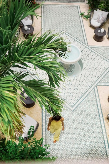 Un paseo ajardinado serpentea hasta el agua en este complejo playero de lujo. El restaurante con vistas al mar y el comedor junto a la piscina crean un escenario pintoresco.