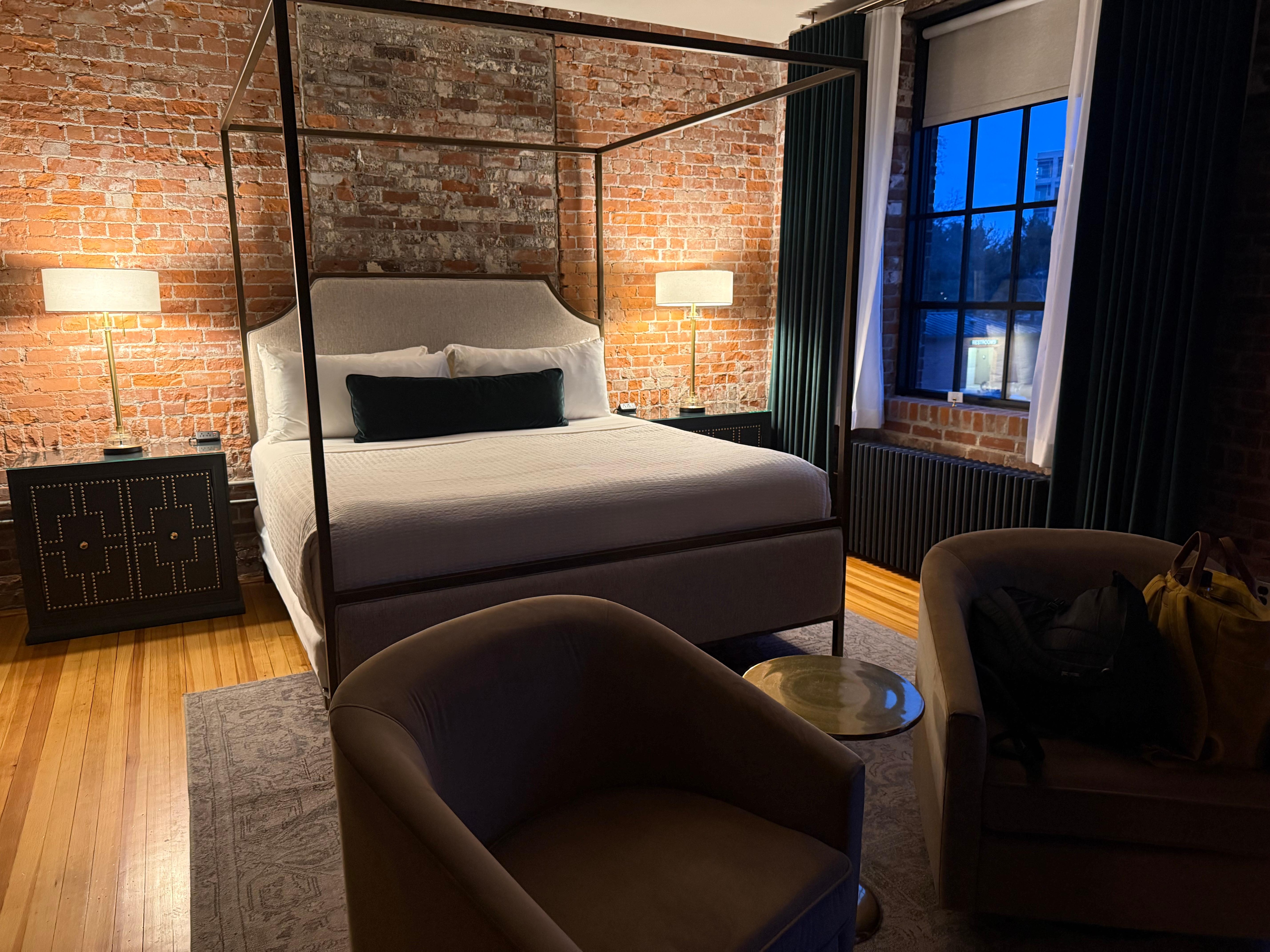 I stayed on a Thursday night and there was a free public concert on the green with food trucks (the pizza truck’s calzone was amazing)! There was also a private event in The Hatchery’s lounge when I checked in but they sent me a drink menu and brought me a GLORIOUS cocktail with a smile. Crickets by 9 pm.