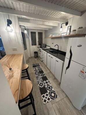 Sí, hay una cocina que también incluye una tostadora, utensilios de cocina y un refrigerador.