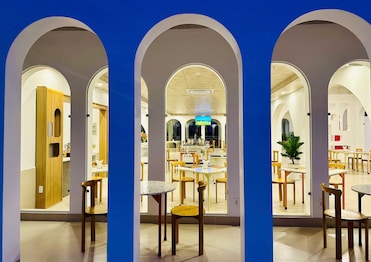 Este hotel exhibe una elegante arquitectura mediterránea en pleno centro de la ciudad, combinando la estética cultural con la comodidad urbana.