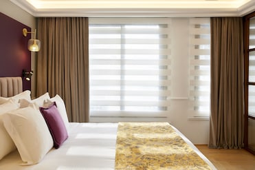 Húndete en los colchones y ponte cómodos albornoces. Las cortinas opacas garantizan un sueño perfecto, mientras que el servicio de cobertura añade un lujoso encanto.