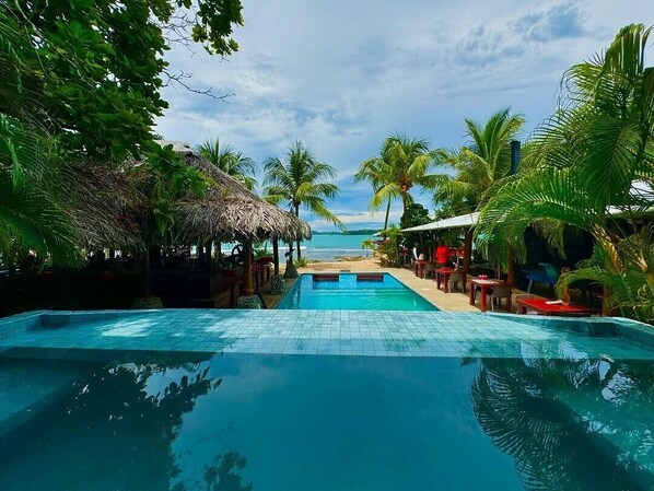 We didn't like the accommodation at all. It was always loud because the bar was right next to the pool, and lots of people from outside came there to party. The pool was incredibly small and looked bigger. Furthermore, the hotel didn't mind even having a dog in the pool drooling all over the water. I found it disgusting. Also, it wasn't possible to swim in the sea.It looks like there's a stretch of beach there from the pictures, but reception also told us we couldn't go into the sea. There were no chairs on the balcony, only one uncomfortable hanging chair, and a second one was torn down. When we asked for two chairs, we were simply told no, because guests were always throwing them off the balcony...We wanted to leave two days early because everything wasn't as expected and as depicted in the pictures. We clarified the matter with Expedia, and if the manager agreed, we were told we'd get our money back. We even found a replacement on-site and went to reception with him. Afterward, the manager lied to Expedia, and we didn't get a cent back. And the hotel even charged us twice. In our opinion, we wouldn't recommend this hotel.