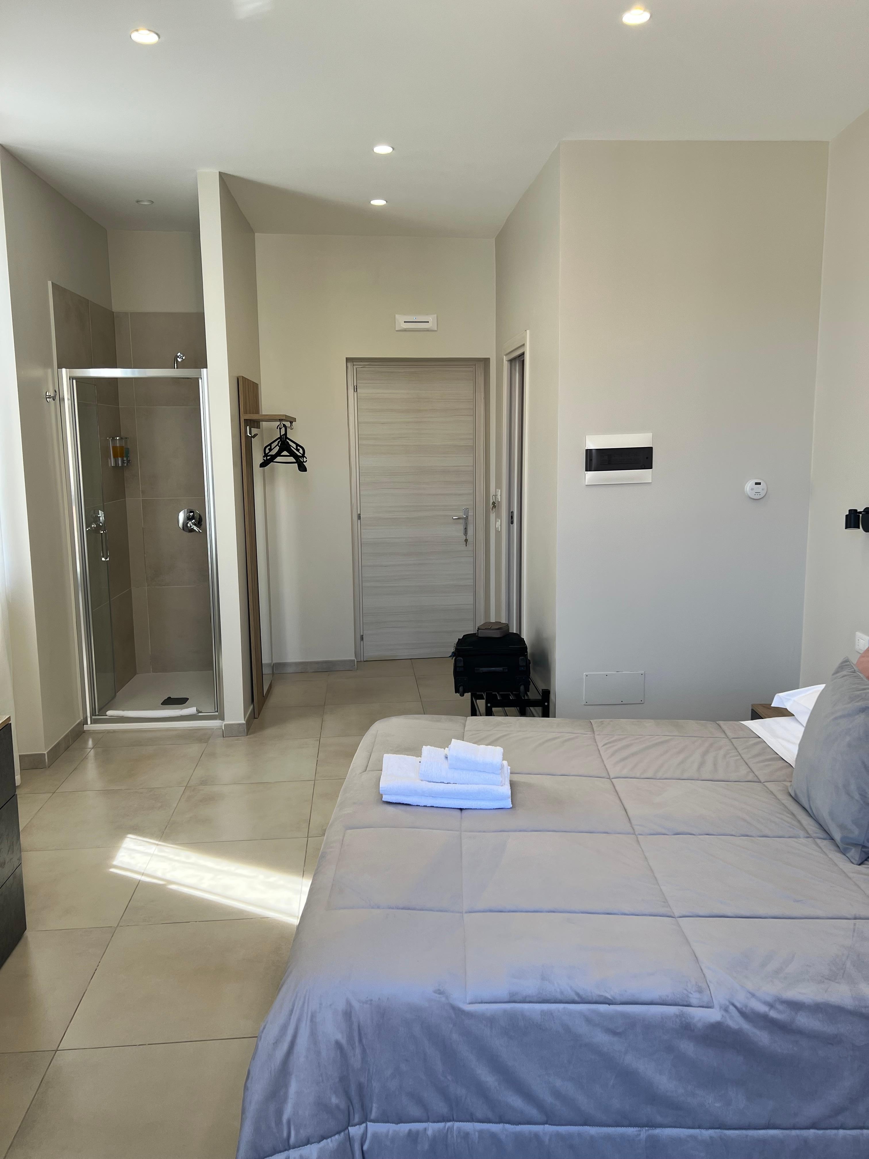 B & B Townhouse 54 is a great reminder not to judge a book by its cover. Although the entrance is situated next to a car park on a gritty side street, the lodging itself is delightful, and Toni and his son Giuseppe couldn't be better hosts. They carried my bag up and down three flights, provided our keys early, and moved our bags in when the room was ready. The rooms are small but immaculate and well furnished. Having the shower stall in the bedroom corner was a bit unusual, but if you're not shy with your room mate it's not a problem. The room had coffee service and a small fridge whose usefulness is limited by the need to leave a key to keep the electricity on ( a common feature in Italy). As a bonus, our room (#5) had direct access to a large shared terrace. Breakfast was varied and generous, including freshly brewed espresso drinks. The flat is located 2 minutes walk from the Grand Teatro Massimo and 5 minutes from Piazza del Duomo. There is also an airport bus stop (Alibus) less than 5 minutes' walk for easy transfers. Highly recommend!
