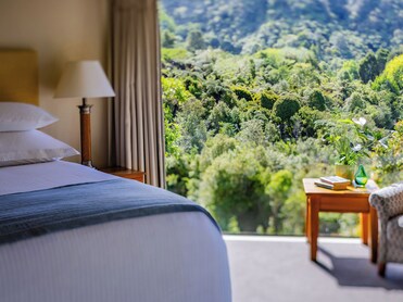 We chose solitaire lodge as primarily a place to relax after 7 days of hiking. While others at the lodge scheduled days full of activities coordinated by the lodge (not included), we didn't really want to leave our room. The rooms have a wonderful relaxing view of the water and the volcano mountain. The rooms themselves were very comfortable, peaceful, relaxing with a comfy bed and sofa and floor to ceiling windows and a soaking tub with a large picture window of the same. The common areas were also very relaxing with great views. It is not fancy, opulent, but with a very comfortable homey lodge feeling. The hosts Pip and Nick were always there in the background waiting to assist you with whatever you wanted on or offsite. The only negative is that it is far from everything, so there is always a 80-90$NZ taxi/lodge ride one way - unless you chose the helicopter tour that lands in their backyard. The all inclusive includes your meals, but not your alcohol at meals, but does include your mini bar in your room. Seems that a glass of wine at meals should be included with your meal if it is included while in your room, but not worth debating.