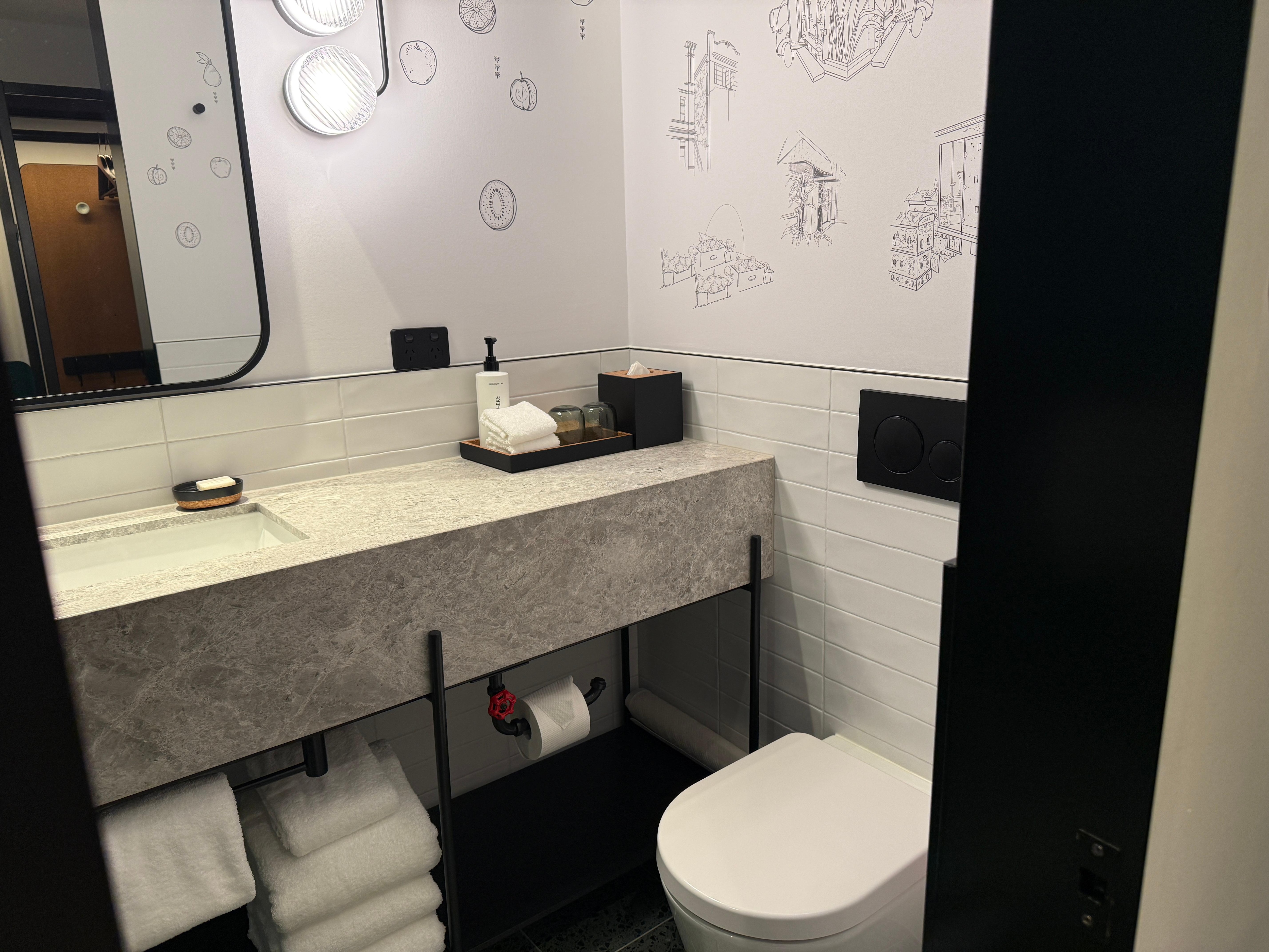 The room was compact but well-designed: stylish, impeccably clean, and functional. However, the bed was extremely firm with no cushioning, which made it quite uncomfortable. The feather pillows didn’t help either, offering little support and adding to a restless night.