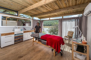 Good cases taken directly to our lodge which we got to by golf cart. (This broke down the following day and replacements lights did not work so was given a torch!)(Really!) Barbeque one evening but difficult to actually see what I was eating as the light wasn't good. Face clothes disappeared, asked for 2 replacements, 1 given, likewise mini bar wasn't stocked properly. We were told that our group had to all do the same thing during the free time between drives, yet when we went to the beach, we had people from other groups joining us. Likewise when we asked about doing a bush walk, we went with another 2 people and it was only from the main lodge, not what we'd been given to expect, which was why my mother decided not to come. There was never any canoe session which we'd also requested and was the reason we'd chosen the river lodge for the other activities between drives. There was an issue with the pool malfunctioning and making a noise on our last night which was reported but nothing done. The phone to the lodge didn't work! The only way to contact reception was by going outside, getting in the golf cart and driving up to the main lodge. Not good enough as it was horrible being so cut off. No wifi in lodges which would be better. Towels from the pool were not removed but just left after day 1, so never checked. Query Big5 as the leopard hasn't been seen for 6 months we were told.