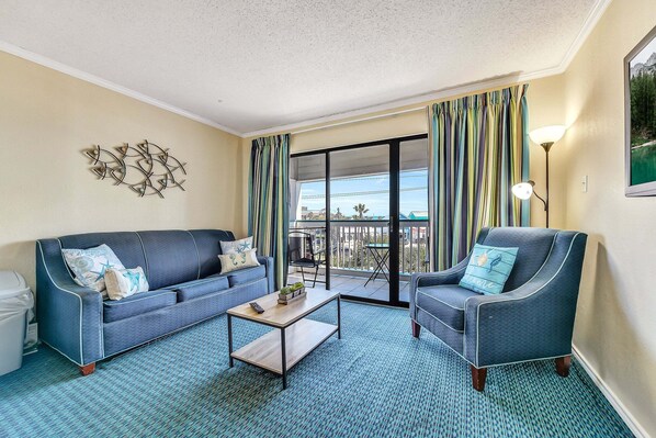 Room was clean, looked like new coastal pillows! Easy parking, quiet hallways, friendly staff to check in and out down the road at that office. AC had small issue, was fixed immediately! The towels need to be bleached or replaced. The out door furniture was not appropriate for a high deck view of the beach. Additional fee to park $25.00