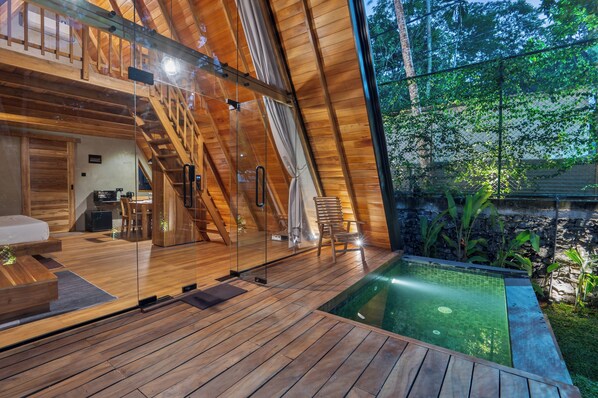 Sí, todas las habitaciones cuentan con una piscina privada y un patio.