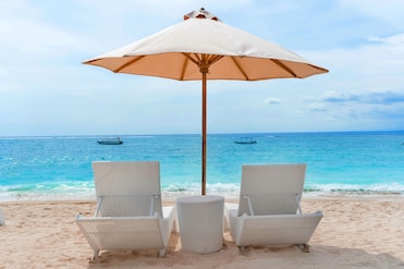 Este complejo se encuentra justo en la playa, con muchas tumbonas y sombrillas. Los amantes de la playa pueden disfrutar de aventuras de snorkel o remo mar adentro.