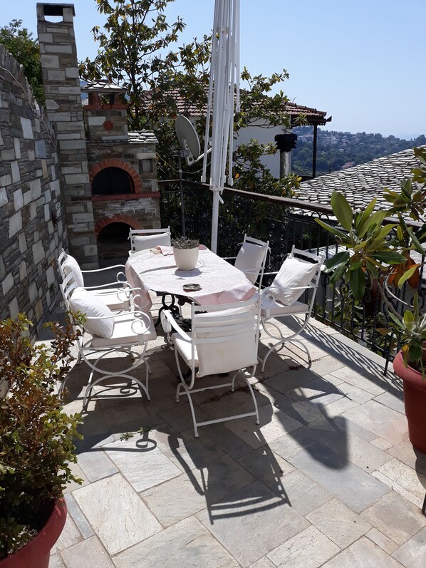 Archontiko THEODORA in Makrinitsa Pelion, as most hotels in the Pelion villages, are actually old houses, altered to serve as little hotels with typical color of village homes. Most villages have narrow, uphill little streets which in the high season period are not accessible to cars. Therefore, one has to park at the entrance of the village and walk to the hotels. Same holds with Makrinitsa. Thanks God, THEODORA is on the main street of the village and one has to walk shortly. Sometimes (early morning/afternoon) you can take the car to transfer the luggage and return to park. At any case, this is the magic of these villages and the great view over the Pagasitikos gulf and the Volos city, which is worth visiting. The hotel is nice, provided that one can climb stairs. The rooms, especially on the second floor, are quite spacious and clean. The breakfast is served on the terrace with great view. However, I can not say that the breakfast itself is great. It is just basic!!!!