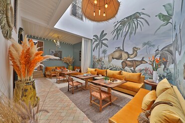 Riad que cuenta con un restaurante de cocina internacional, 3 bares y una cafetería. El servicio de chef, las cenas privadas y el desayuno local gratuito añaden un toque delicioso.