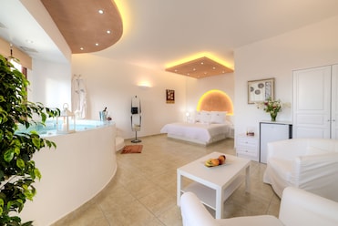 I'm so glad we chose to stay here! We were celebrating a birthday on Santorini island and opted to not stay in Oia or Fira due to high July crowds. We rented a car from the port (pre-arranged) and drove ourselves to the hotel with ease. Zafira greeted us upon arrival and took the time to go over a map with recommendations on how to spend our free time. This hotel is close to beaches, the light house, an ancient city, Pyrgos, Megalochori, and more. Very easy to discover the island from this location, and still close enough for our sunset cruise to pick us up directly.