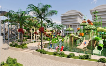 Este hotel de lujo ofrece piscinas cubiertas y al aire libre con tumbonas, sombrillas y un tobogán acuático. Los niños tienen su propia piscina. Los huéspedes disfrutan de dos bares junto a la piscina.