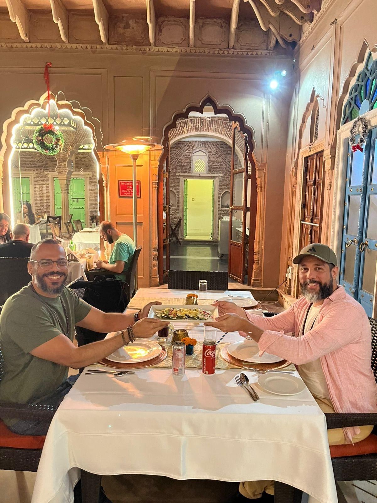 Desde o inicio, quando estava buscando e definindo a hospedagem, entrei em contato com Haveli e sempre foram muito atenciosos, escolhi passar uma noite pois era uma data muito especial, e o hotel me pareceu ser algo especial, diferente de tudo. E realmente, foi incrível! Mesmo com o caos do transito de Delhi (e isso não é uma critica, pois em Sâo Paulo, cidade que moro, o transito é tão caotico quanto...) quando estavamos a caminho do hotel, avise que estavamos chegando nos foi enviado uma equipe para ajudar com as malas, pois o local onde o hotel está não é acessivel a carro, é preciso descer proximo e caminhar alguns metros. Isso não foi problema, até gostei pois foi uma experiencia nova. Os meninos foram até o ponto combinado, pegaram todas as malas e bolsas e carregaram gentilmente para nós, nos fazendo sentir Marajás. Essas pequenas sutilezas são grandes atitudes e que levo muito em consideração. Chegando no Haveli, já fomos direto para o edificio onde tem o restaurante, parecia que estava tudo combinado, pois assim que chegamos, nos convidaram a ver uma apresentação de dança. Logo em seguida subimos para a cobertura e pudemos visualizar a Old Delhi por uma outra perspectiva. Descemos para o jantar e fomos atendidos por um garçon (infelizmente não consigo lembrar o nome dele, me desculpem, mas lembro que ele é muito fã do El Chapo) que foi muito solicitido, estavamos com duvidas sobre o que pedir e ele nos ajudou com sugestões que muito apreciamos. Quarto maravilhoso! <3