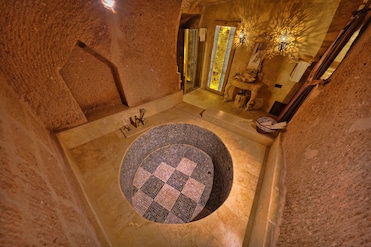 One of the most incredible hotels I’ve stayed at. Upon arrival, staff was welcoming and helpful. They gave us recommendations on dining and things to do. They booked our taxis and a whirling dervish show. They have a laundry service, which was about 12 USD. We stayed in the king terrace room. The room was perfectly clean and beautiful. Bed was very comfortable. They did not have blackout curtains, and we face the sunrise, so my only recommendation for them it to get blackout curtains. We did actually use the giant bathtub and there was plenty of hot water. The terrace was the best part. A seating area, a couch facing the mountains, and two hammocks. In the mornings, we sat on the couch to watch the sunrise and the balloons. The balloons were not very close to the hotel, but it was like a birds eye view. At night, you can see the lights from Goreme and Nevsehir, as you’re on the top of the mountain and those cities are in the valley. The location of the hotel was ideal. It’s on the edge of Uchisar so it’s very quiet. It’s a short walk to many restaurants, shops, and the city center. Breakfast was one of the best parts about the hotel. It’s a traditional Turkish breakfast with lots of pastries, jams, and fruit. We could also order off their menu like lattes or omelets which are free to hotel guests. If you don’t get the king terrace room, there is a small terrace above the king terrace room and the hotel restaurant also faces the sunrise and balloons.