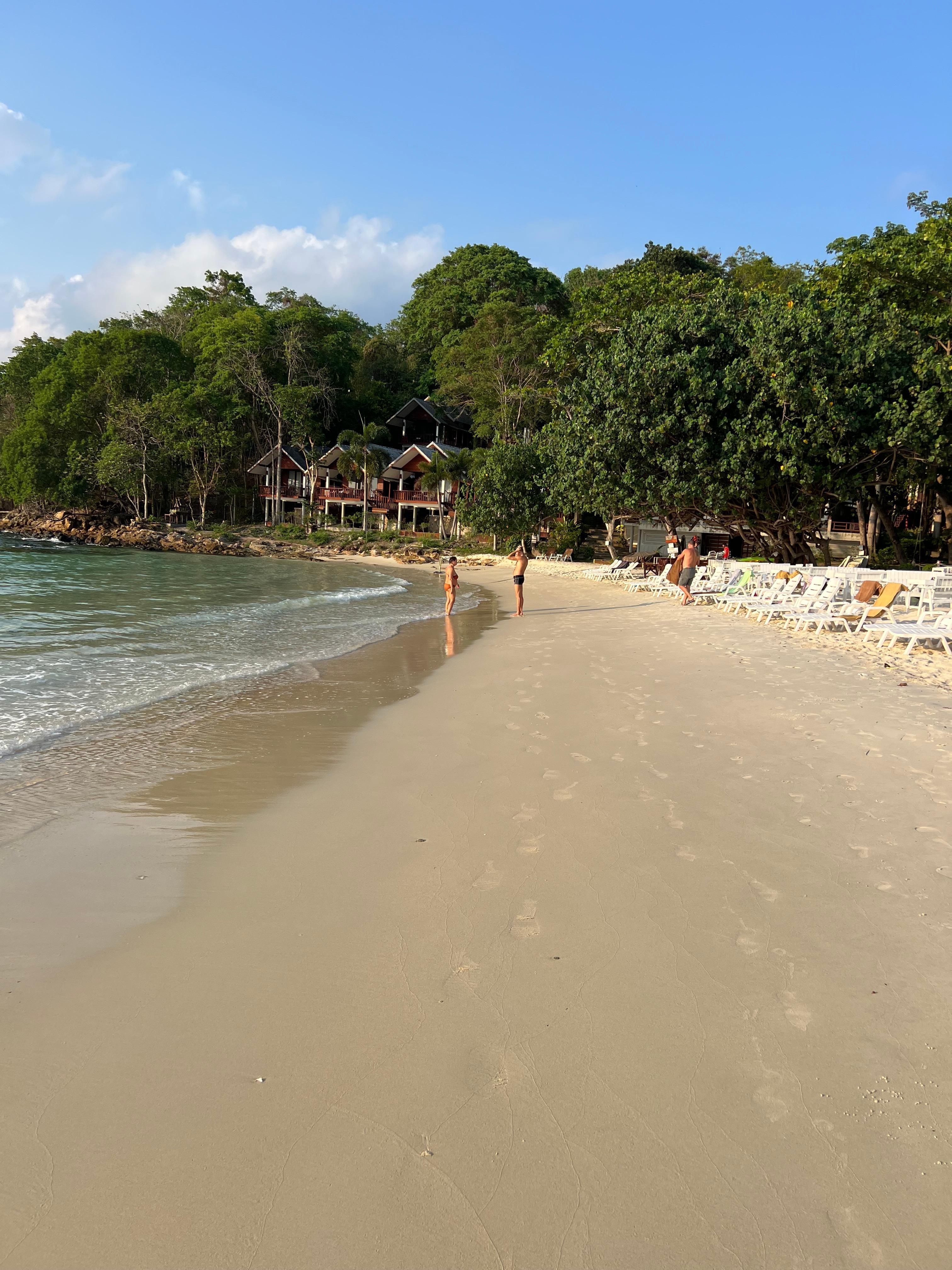 The standout attraction of this resort is the stunning beach where it is located. Quieter and more exclusive feeling than neighbouring beaches, this one is a real gem. Just three resorts, with Tubtim at the far end. I was in a balcony garden view room which was spacious and really comfortable. Nice and light and bright. As others have said, it is up a lot of steps, and the path up there is not lit, take a torch! The shower pressure is non-existent, so don’t expect much. The customer service is very patchy, from the downright rude and unhelpful, to the lovely and can’t do enough to assist. There is a rather odd system where you have to drop your key at reception if you want your room serviced. And then all keys are left out once cleaning has been done, so there is no key security. They don’t overcrowd the beach with loungers, but as a result there aren’t enough. Unless you get down there at 7 am to stake your claim with a towel, you risk not being able to get one. I wasn’t given a coherent reason why they don’t have more loungers. Getting deck chairs is easier, just ask at the bar and they will set you up a couple with an umbrella. Grab a small seat cushion from the barbecue area. The loungers are hard as stone, and for some inexplicable reason don’t have full length cushions, so you could have a very uncomfortable day on one. I favoured the deck chairs. The breakfast is distinctly average. All in all I would definitely stay here again largely because of the location.