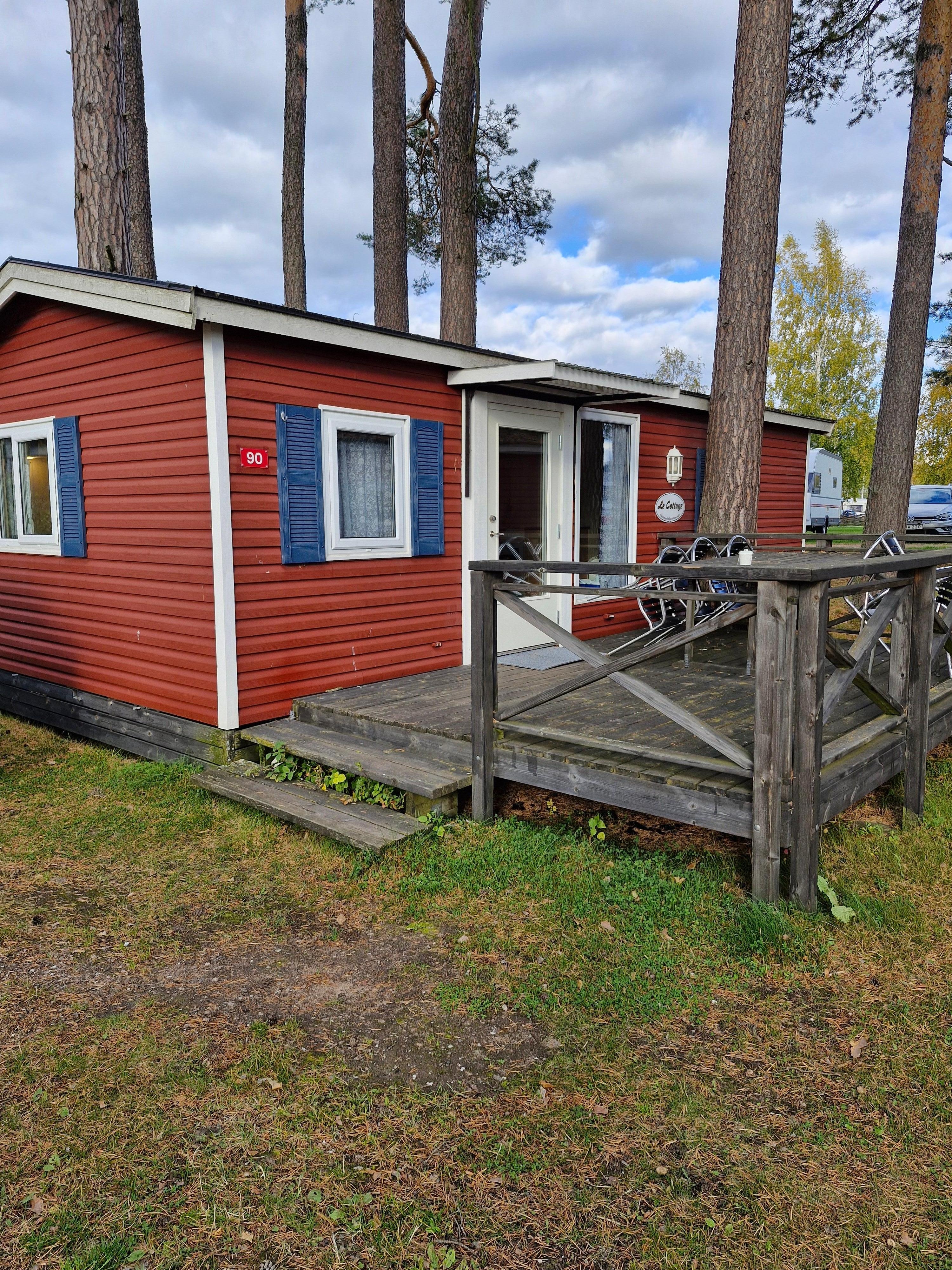 En campingstuga av enklare sort. Helt ok för det priset men saknar rinnande vatten i stugan. Men läget bra och smidig personal på campingen.