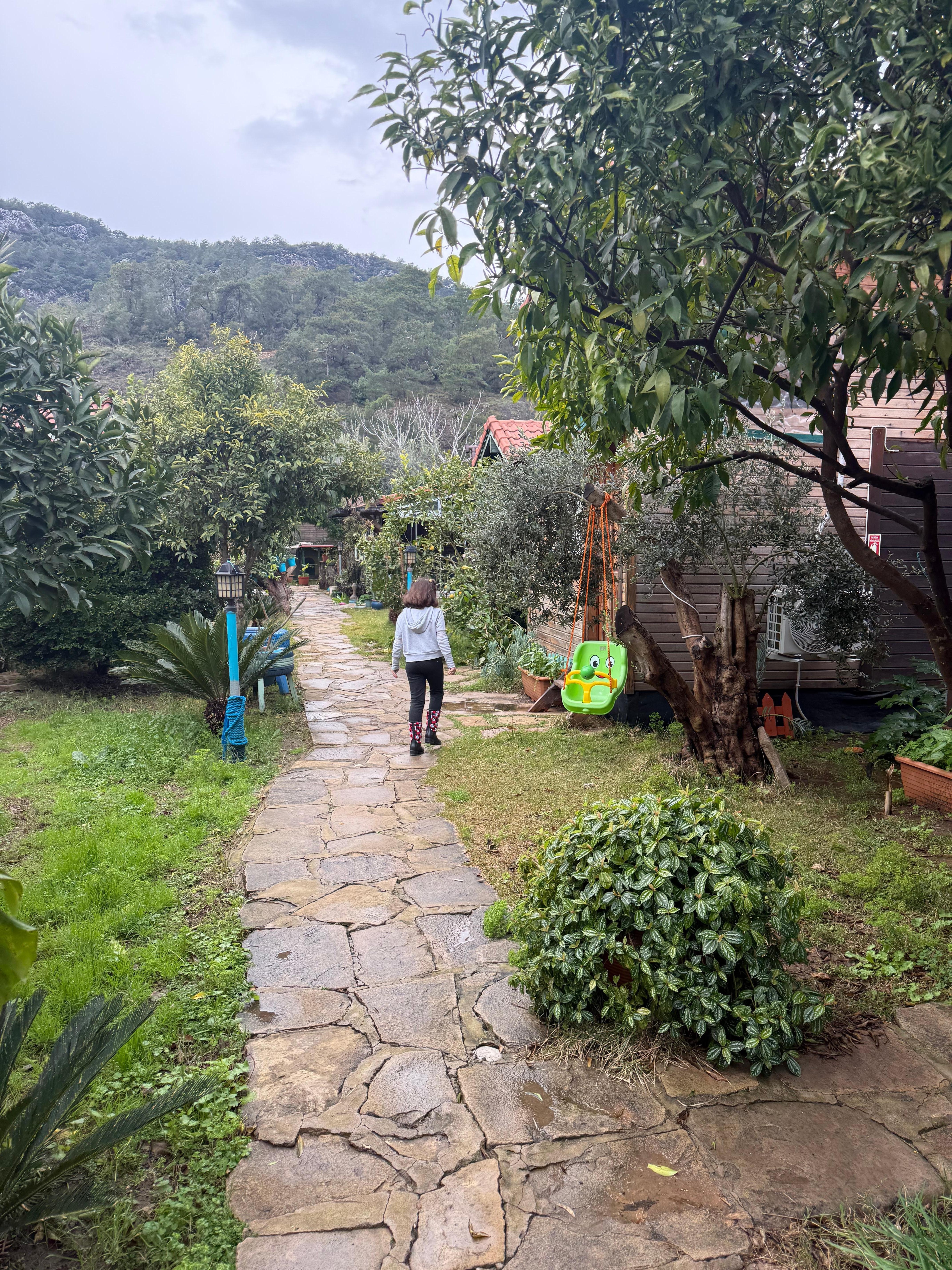 Anne ve oğlu tarafından işletilen, tatlı ve huzurlu bir konaklama yeri. Bahçe içinde, ağaçlar altında, sessiz, canlı dostu… Çift olarak kaldık ve gayet memnun bir şekilde ayrıldık. Odamız sevimliydi. Sahile yürüme olarak yarım saat kadar mesafede. Ancak Çıralı merkeze biraz uzak kalıyor. Ama Çıralı’da bence yoruldum ettim demeden yürümek lazım. Özellikle akşam serinliğinde sahil bandında herkes yürüyor uzun uzun.